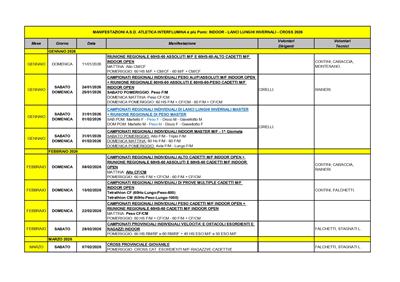 PROGRAMMA GARE INDOOR COMPLETO GENNAIO E FEBBRAIO 2026